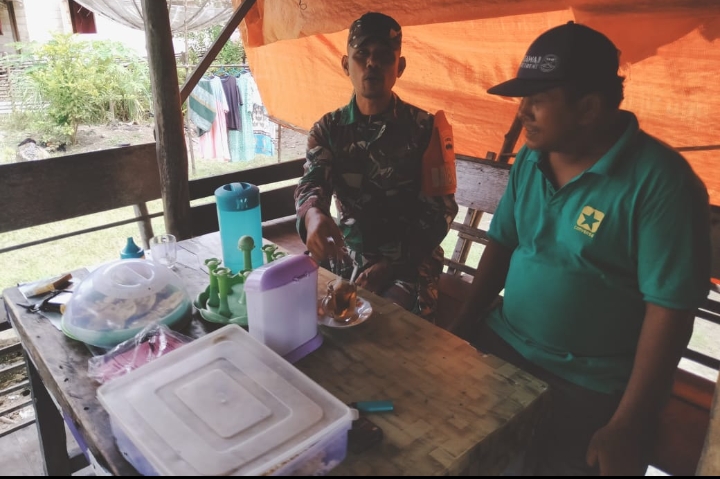 Guna menunjang kegiatan di lapangan, Babinsa Koramil 02/Muara Siberut, Kodim 0319/Mentawai, Serka Sopiandi perkuat komunikasi sosial dengan masyarakat di wilayah sekaligus menjalin silahturahmi dengan warga binaan.