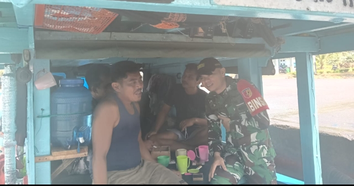 Babinsa Turun ke Kapal Nelayan Berikan Arahan Cuaca Buruk