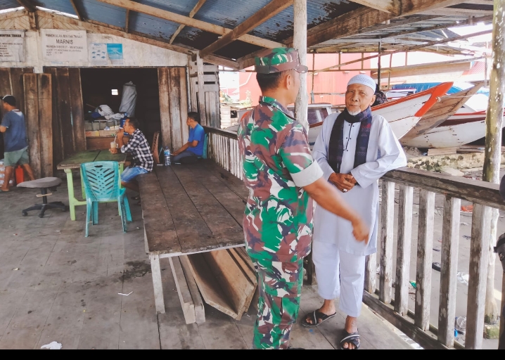 Babinsa kali ini berbincang hangat dengan mitra karib yaitu tokoh masyarakat setempat Pak Nun. Dalam kesempatan itu Babinsa membahas terkait keamanan dan ketentraman wilayah.