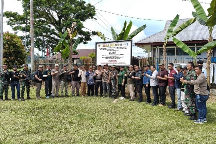 Dalam rangka penegakan hukum dan pengamanan kawasan hutan negara, Satgas Pengendalian Kawasan Hutan bersama Danramil 04 Sikakap Kapten Inf Herizal dan unsur Forkopimcam melaksanakan kegiatan pemasangan plang peringatan di area lahan non tanaman kehutanan seluas 78.000 hektar di wilayah Pagai Utara Selatan Kecamatan Kabupaten Kepulauan Mentawai , Jumat (06.02.2026).