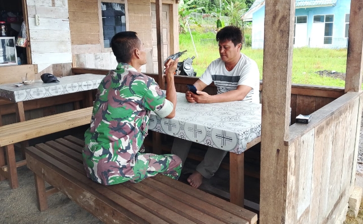 Komsos ini tentunya upaya Babinsa menjalin hubungan silahturahmi dengan masyarakat melalui komunikasi sosial. (Tirman/Pendim)
