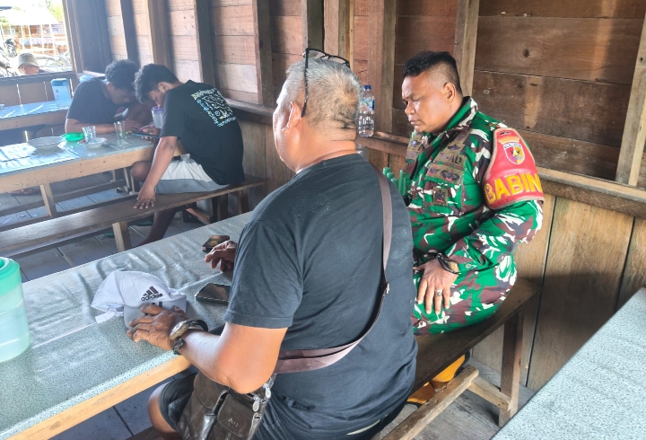 Seperti yang di lakukan Babinsa Koramil 01/Sikabaluan,Kodim 0319/Mentawai, Sertu Muskhandar lakukan komunikasi sosial dengan Ucok supir truck di salah satu warung warga di Dusun Pokai, Desa Muara Sikabaluan, Kecamatan Siberut Utara, Kepulauan Mentawai, Jumat (3/4/2026).