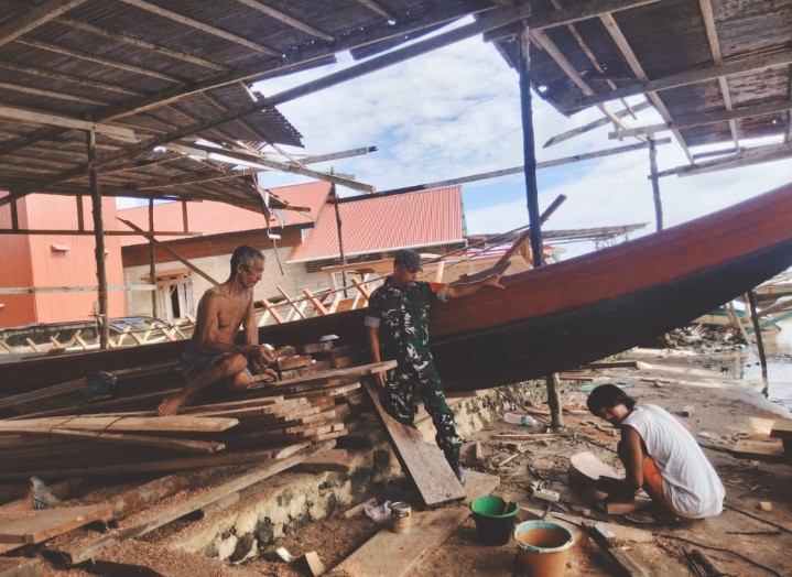 Pada kesempatan itu, Babinsa memberikan motivasi kepada tukang serta saling sharing terkait pekerjaan yang tengah di lakukan yakni mengerjakan sped boat dalam kondisi parkir di muara.